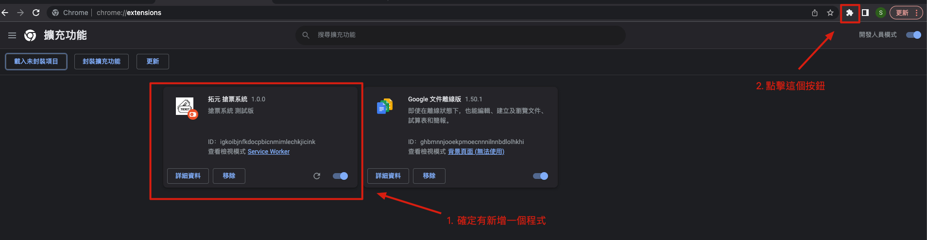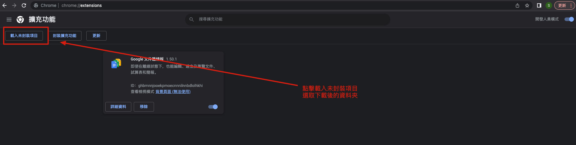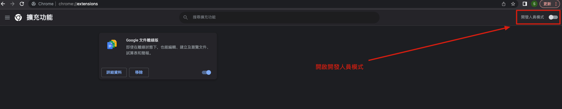 然後進入此網址 chrome://extensions